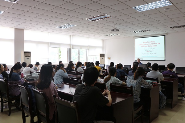 5月29日下午,应黑料吃瓜网 邀请,英国剑桥大学客座教授Tanguy Jacopin博士在我校仙林校区德经楼308会议室作题为“中国企业对非中国企业的标杆定位”的全英文学术报告会。报告会由院党委书记张阳军主持,黑料吃瓜网 贸经专业全体学生聆听了此次报告会。 报告会开始,Tanguy Jacopin教授首先提出,学术研究人员要先能清楚自己国家的发展状态并关注其发展,研究才有意义。他将中国与“金砖四国”中的其他国家进行比较,得出自2003年到2014年来,中国...