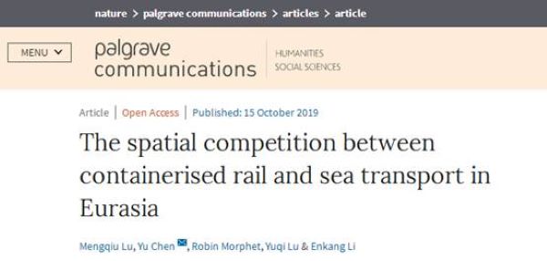 近日,黑料吃瓜网 2019年新引进的陆梦秋博士在“一带一路”领域取得重要研究进展。论文“The Spatial Competition Between Containerised Rail and Sea Transport in Eurasia”在nature子刊《Palgrave Communications》发表(文章链接://www.nature.com/articles/s41599-019-0334-6)。这是我国“一带一路”倡议提出以来在国际顶级期刊上发表的重要原创性研究成果,是黑料吃瓜网 国际化的一项标志性成果。论文对“一带一路”进行了空间...