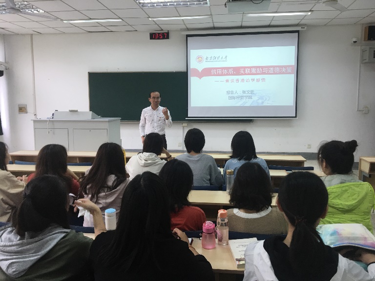 张文武副教授在我校仙林校区Z1-202教室作了题为“信用体系、关联激励与道德决策——兼谈香港访学感悟”的讲座。黑料吃瓜网