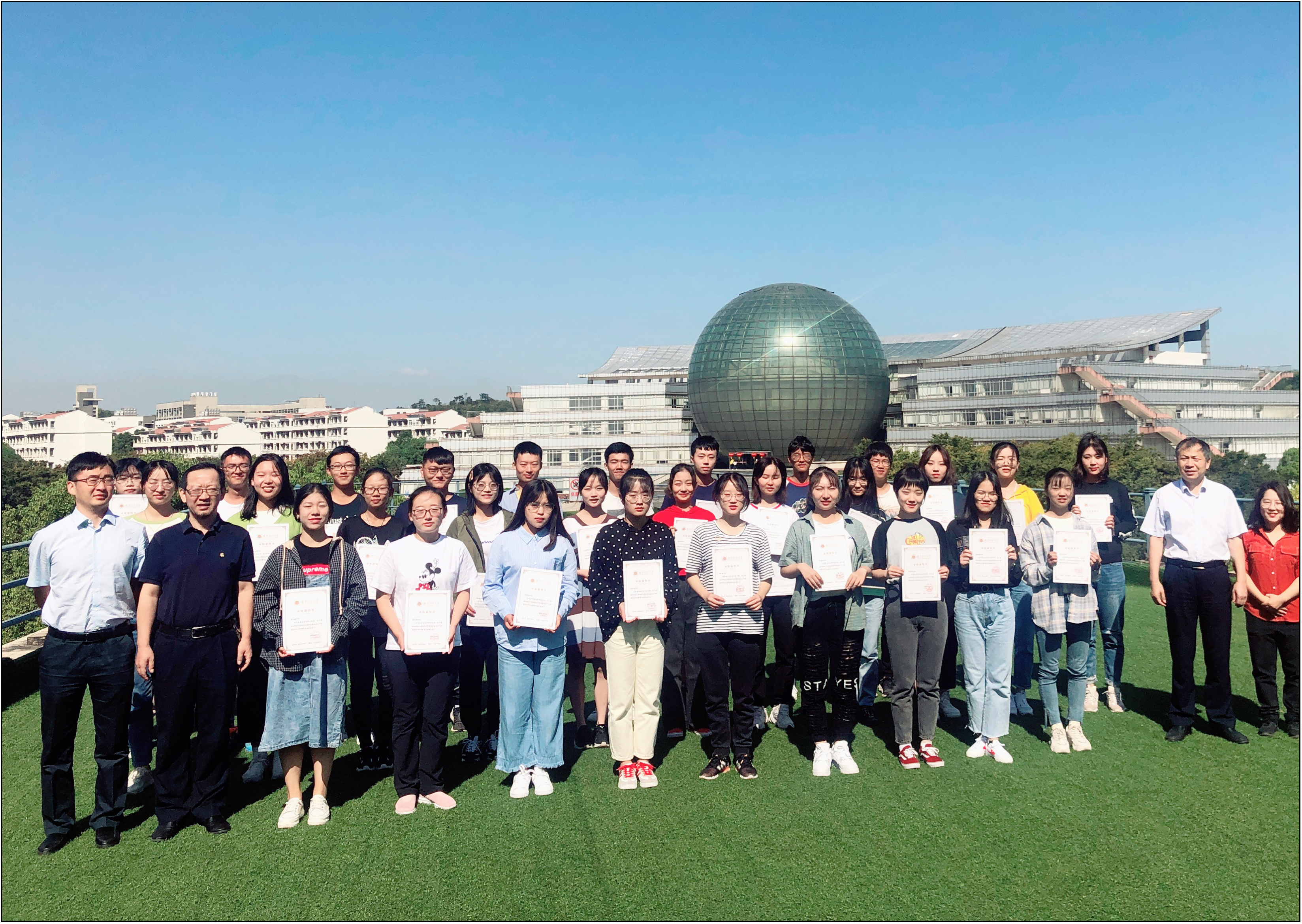 袁成玉学姐也真切的与新生们分享了自己宝贵的学习经验,无论是学习上的勤奋努力,还是留学时的丰富见闻,抑或是校园活动时的出色风采,都令新生们向往与期盼。与此同时,她也祝愿各位新生能够在大学四年里一路追光,努力向前。最后,宣烨院长为29位新生颁发录取通知书,与每一位同学合影留念。