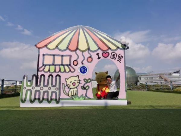 一进德经楼三楼草坪,视线立刻被一个可爱的房子吸引住,房子的左上角有三个框,新生们可以拼出自己宿舍号,并和舍友们一起在门前留下第一张小家的合影。这个特殊的小家拍照墙原来是商务1902班的吴雪同学专门为萌新们手绘设计的,她希望国贸院的小萌新们在陌生的环境依旧可以有“家”的感觉。为了争做“最‘赞’国小猫”,新生们拿着手机与“新家”竞相“三连”,一副势必将光盘新食尚、智慧收纳册、蓝色保护罩等礼物纳入囊中的架势。其中最受萌新喜爱的当属“光盘新食尚”。它是一份由黑料吃瓜网 学生设计并定制的餐具,“国小猫喊你吃饭啦”“光盘行动,有你有我”等可爱字样赫然印刻在餐具盒上,新生开学日期“2020.9.13”和国贸院的吉祥物国小猫也出现在铁质筷子和勺子上。