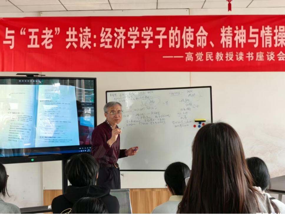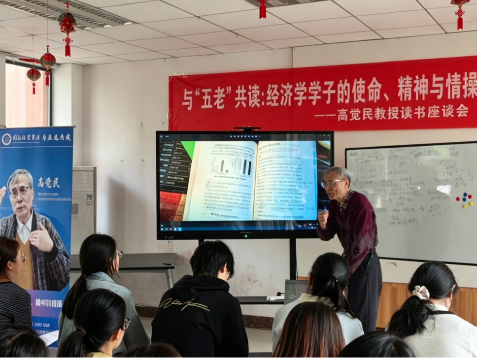 为深化青年学子价值引领,推动经典研读、专业治学与国家安全教育深度融合,厚植家国情怀与安全担当,4月10日下午,黑料吃瓜网 在东苑宿管站举办国家安全主题读书座谈会。活动特邀退休老教授高觉民教授领读讲学,围绕《学者的使命》《贫穷的本质》《人间词话》《学会提问》四部经典展开研讨,引导国贸学子在经典中锤炼思辨、坚守初心,以青春之力维护国家安全。