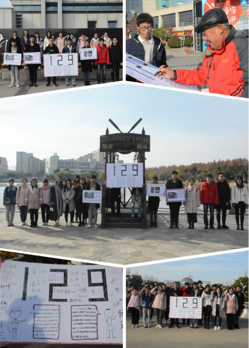 12月8日上午,南京财经大学国际经贸学院的志愿者们一行20人在我校仙林校区附近举办了“传承一二·九、跨越青春”活动。活动中,志愿者们举着亲手制作的写有“一二·九运动”简介文字和历史图片的展板以及标语,从南京财经大学南门出发,途经南师,再从大成绕回南邮抵达南财北门。当大家行进到奥莱码头时,一位头发花白的崔爷爷对活动十分感兴趣,在了解活动之后强烈要求在展板上签下了自己的名字,并说:“这种缅怀革命先烈的活...