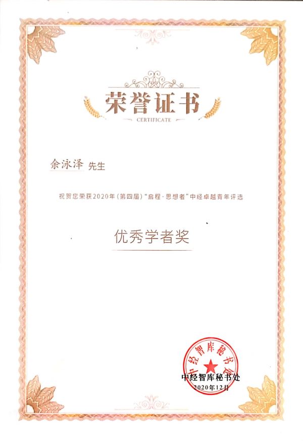 2021-01-06我院余泳泽教授入选2020年度中经十大卓越青年