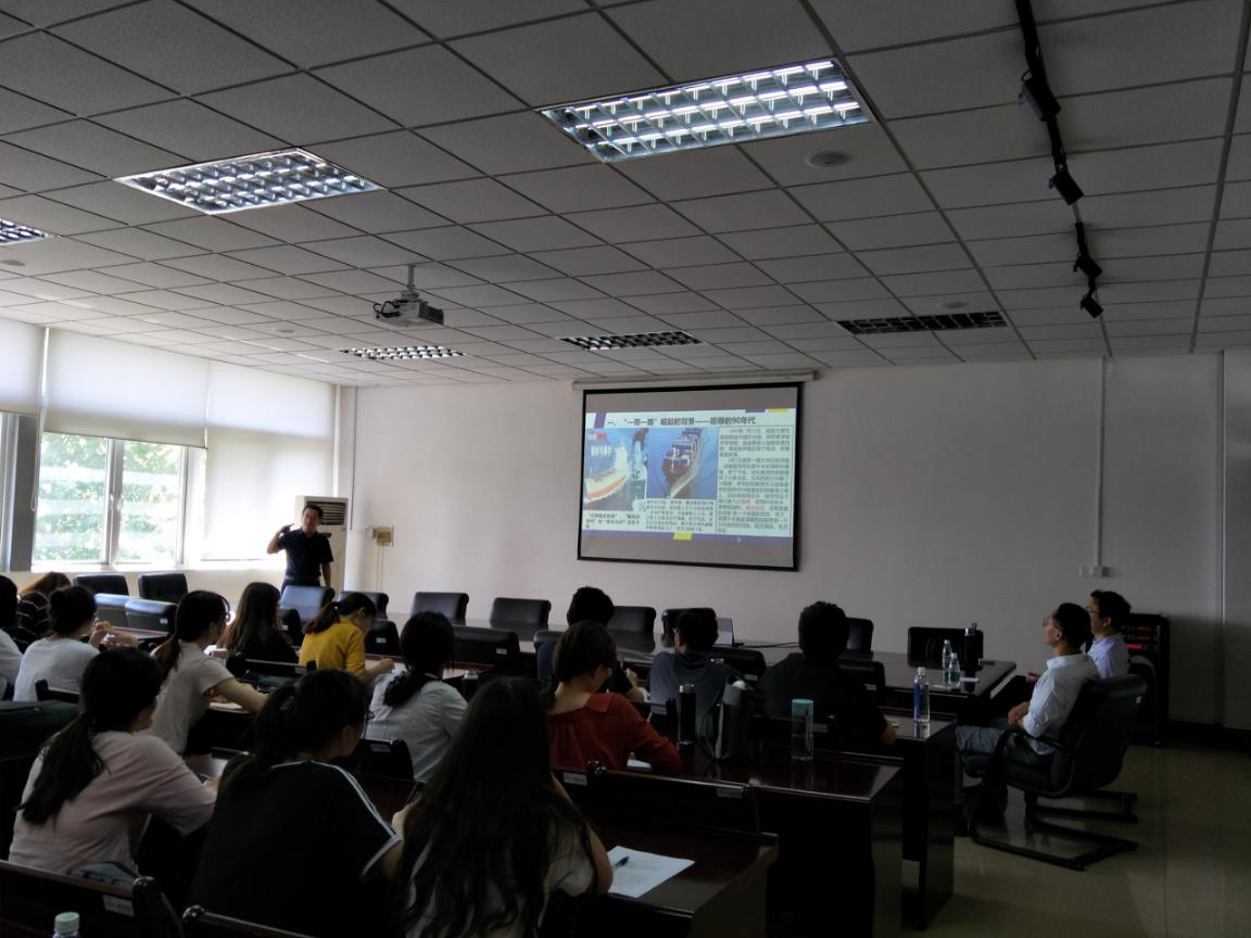 周立岩教授围绕“一带一路”倡议的背景、核心内容、文化差异以及国内与国际经济发展和贸易需求等方面循序渐进,结合自身工作经验,详细阐述了“一带一路”倡议下国际贸易的机会。此次报告过程中,周教授语言诙谐幽默,积极与学生互动。