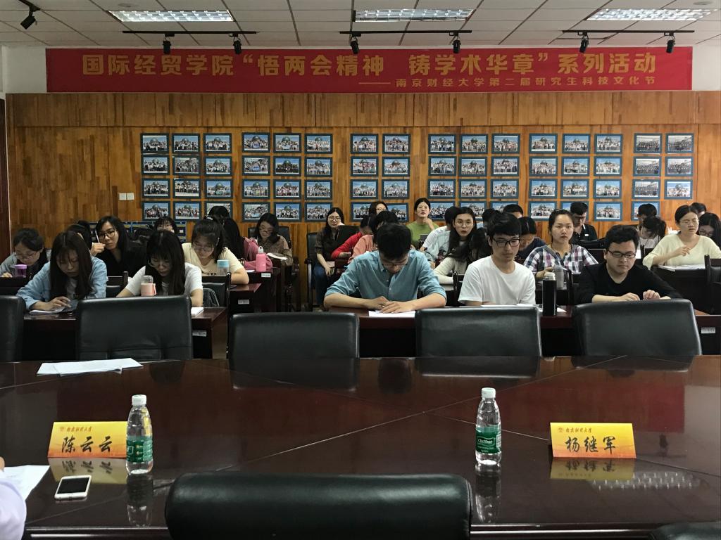5月15日下午,应国际经贸学院邀请,南京财经大学马克思主义学院陈云云副教授在仙林校区德经楼308会议室作了题为“悟两会精神,铸学术华章”的专题讲座。会议由国际经贸学院副院长杨继军主持,部分老师及研究生参加了此次讲座。