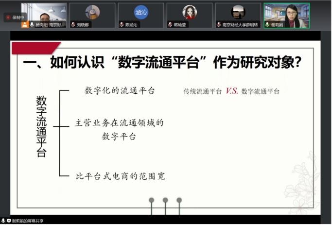 在互动环节,在线师生积极提问,就市场分割、数字流通平台治理、如何基于现代流通实践提炼科学问题等方面的相关问题进行交流,谢莉娟教授结合前期调研、研究成果、新近思考进行了详细回应。
