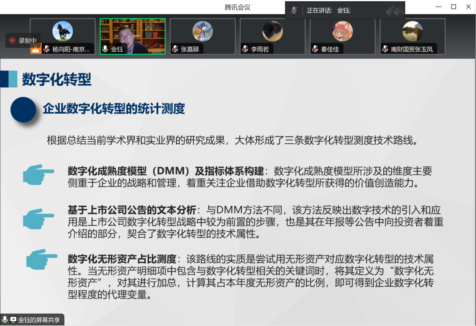 在互动环节,在线师生就如何合理选择关键变量的测度方法、兼顾机制变量设计的逻辑性与新颖性、平衡流通领域研究的理论阐释与实证方案等问题进行交流,金钰教授结合自身研究心得体会与本次讲座主题进行了具体回应。