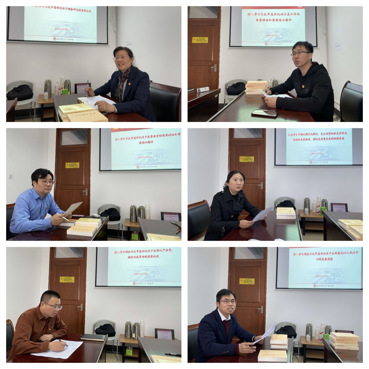 期间,在个人自学和专家辅导的基础上,读书班成员重点围绕“深刻领悟‘两个确立’的决定性意义”、 “习近平总书记对江苏工作的重要讲话和重要指示精神”、“习近平总书记关于高等教育的重要讲话和重要指示批示精神”、“中国式现代化理论”、“习近平总书记关于全面从严治党推进自我革命的重要论述”、“习近平总书记关于调查研究的重要论述”、“习近平总书记关于全面落实以人民为中心的发展思想”、“习近平总书记关于依规治党的重要论述和指示要求”等8个专题的内容开展了五次集中研讨。党员院领导和党外院领导轮流做重点发言,其他班子成员依次分享学习心得,交流运用党的创新理论解决实际问题的具体案例和体会,提出改进工作的思路措施。
