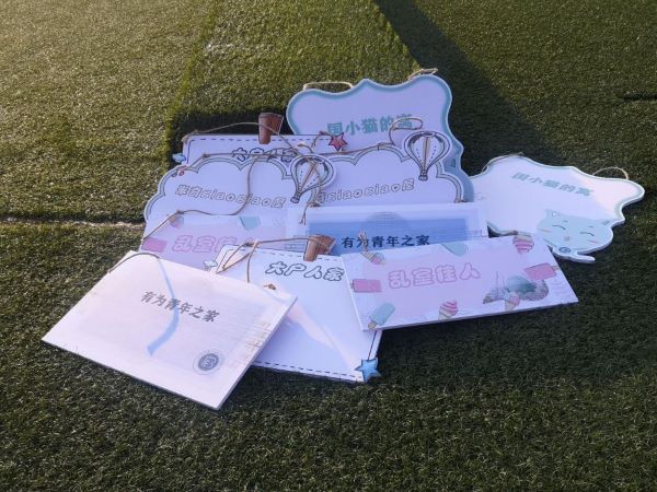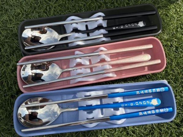 一进德经楼三楼草坪,视线立刻被一个可爱的房子吸引住,房子的左上角有三个框,新生们可以拼出自己宿舍号,并和舍友们一起在门前留下第一张小家的合影。这个特殊的小家拍照墙原来是商务1902班的吴雪同学专门为萌新们手绘设计的,她希望国贸院的小萌新们在陌生的环境依旧可以有“家”的感觉。为了争做“最‘赞’国小猫”,新生们拿着手机与“新家”竞相“三连”,一副势必将光盘新食尚、智慧收纳册、蓝色保护罩等礼物纳入囊中的架势。其中最受萌新喜爱的当属“光盘新食尚”。它是一份由国际经贸学院学生设计并定制的餐具,“国小猫喊你吃饭啦”“光盘行动,有你有我”等可爱字样赫然印刻在餐具盒上,新生开学日期“2020.9.13”和国贸院的吉祥物国小猫也出现在铁质筷子和勺子上。