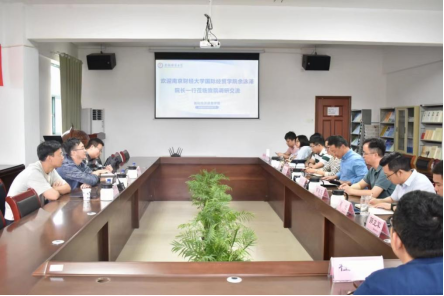 安徽财经大学国际经贸学院张廷海院长首先热情欢迎了余泳泽院长一行人的到来,并表示十分重视此次交流机会,其次对安徽财经大学国际经贸学院的发展历史和现状作出了简要介绍,希望借此次机会共同交流,互相借鉴学习成功经验。