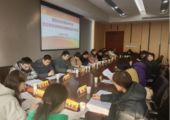 为深入学习贯彻习近平新时代中国特色社会主义思想和党的二十大、二十届三中全会精神,夯实基层党建工作责任,充分发挥学院基层党组织战斗堡垒作用和党组织书记头雁作用。2024年12月18日上午,国际经贸学院在仙林校区德经楼308会议室召开党支部抓基层党建现场述职评议考核会。学院全体党委委员、党支部书记、普通党员、党外人士、群众代表等参加会议。应用数学学院党委书记殷建新、图书馆党委组织员曹瑞杰列席参加。会议由院党委书记周亚芳同志主持。
