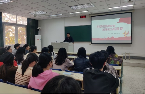活动伊始,国际经贸学院陈启斐副院长致辞强调,青年是祖国的希望,民族的未来,应怀揣梦想和信心,挑起祖国科技任务的大梁,突破科学极限,解决行业内关键技术“卡脖子”难题,在科技创新的道路上勇往直前,推动中国式现代化发展。同时,他以自身经历为例,讲述青年学子对科研的追求并不是遥不可及的,一些重大的科研成果就在我们身边,青年只要敢于创新,敢于追求对科研的实践就一定能为祖国的科研领域有所贡献。青年充满活力,敢于尝试新事物,有着无限的创造力和想象力,科学进步离不开他们的努力和奋斗。