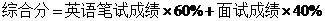 综合分的计算方法:英语笔试成绩和面试成绩(均为百分制)分别占综合分的60%和40%,具体计算方法见公式(1)。