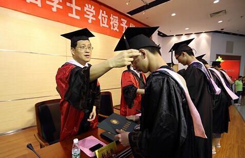 6月19日下午,南京财经大学国际经贸学院2014届毕业生在图书馆报告厅欢聚一堂,共享最后的盛会。校长刘志彪,国际经贸学院院长张为付、党委书记孙丹兵,副书记韩力争、副院长闫星宇、韩耀教授、高觉民教授、杨风召教授、李杏教授出席学位授予仪式,典礼由韩力争主持。