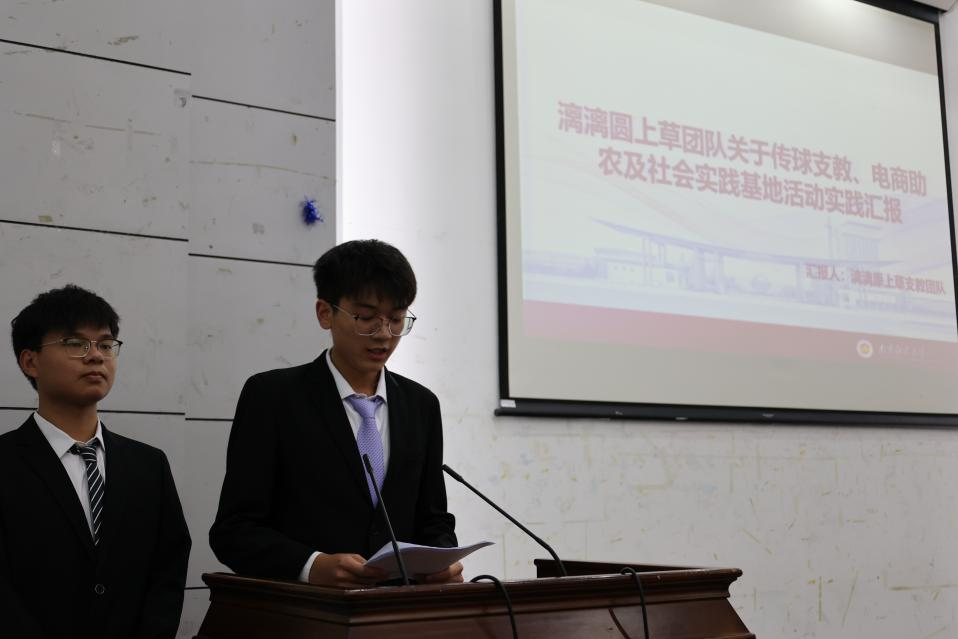 我院十二支优秀团队进行汇报展示,其中暑期社会实践团“漓漓圆上草”支教团队奔赴八桂宝地,在桂林灵川县开展为期半个月的支教活动,以青春力量助力乡村公益,以热忱之心赓续江桂之情。与时代同呼吸、与民族共命运,以青春力量、南财担当在支教活动中焕发绚丽光彩。
