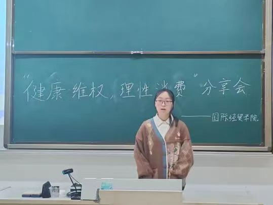 为引导同学们合理规划支出,树立健康的消费观,11月10日下午,我院在博远楼210教室举办了“健康·维权,理性消费”分享会,本次活动邀请到了国际经贸学院的公益营销项目组成员国贸2104班陈雪子作为分享嘉宾。