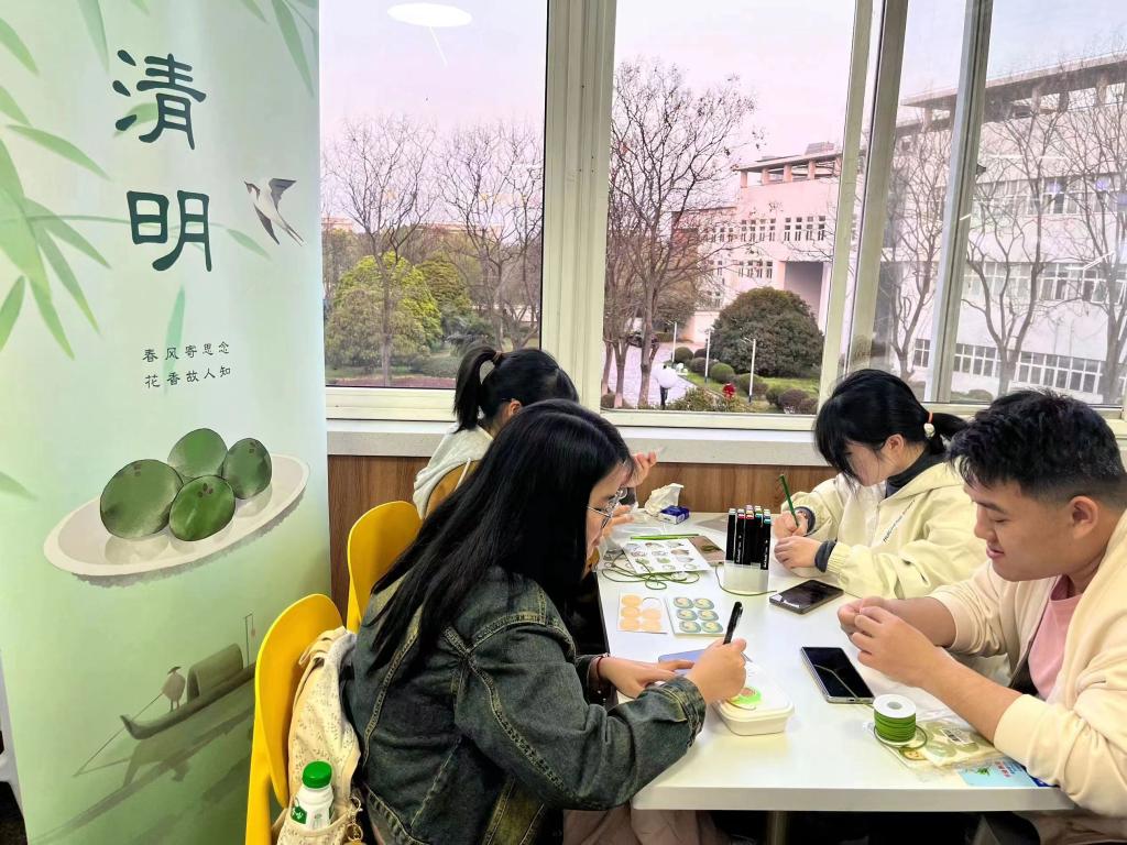 3月31日下午,我院在中苑食堂二楼举行“风气清明,青团飘香”主题活动。“古时有寒食禁火祭墓,清明新火踏青的习俗,前者怀旧悼亡,后者求新护生,两者在文化内涵上密切相连,在时间上也紧密相连,寒食第三日即清明...”活动主持人娓娓道来寒食节的来由,一则则生动有趣的典故引人入胜。伴随着主持人的讲解,同学们开始学习青团的制作过程。有的负责和面,有的负责调馅,有的负责包制,食堂里草头汁水清香四溢,蒸好的青团清甜甘香,软糯可口。翟羽佳同学感叹到“介子推忠义廉洁的气节仿佛伴随着艾叶香气浸润在春日的校园中。“此外同学们还用画笔与颜料手绘了青团小盒,将春日烂漫与清明雨雾相结合,呈现出别样的烟雨江南意境。独享不如共享,同学们纷纷将做好的青团包上精美的包装,送到食堂阿姨、宿管阿姨们的手中,共同品尝这一美味。