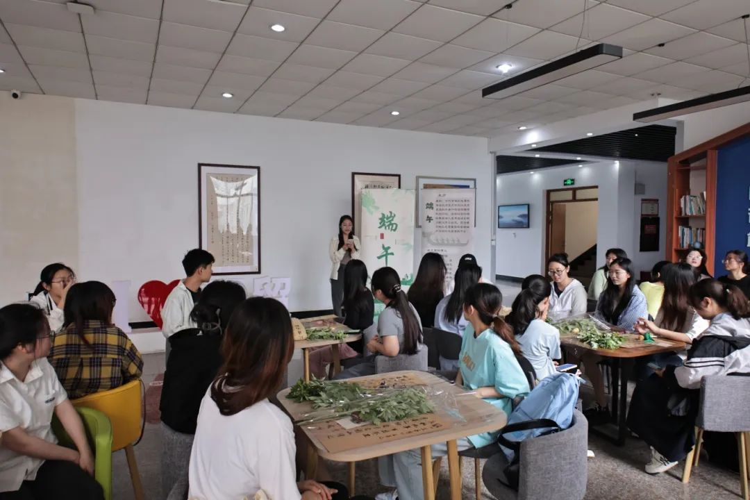 “端午临中夏,时清日复长。”又是一年端午时,为纪念爱国诗人屈原、庆祝端午节的到来,6月1日下午,国际经贸学院在德经楼三楼阅读角举办“端午情长,艾意浓浓”主题活动,以诗歌赏析与制作艾束的形式,迎端午、祈好运。