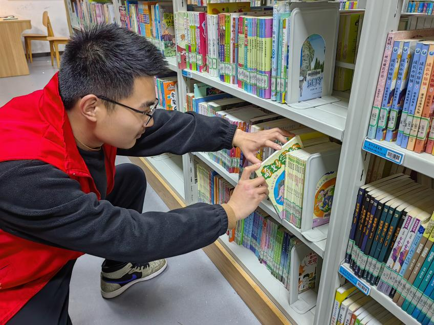 国实2301 程硕勋 2月7日在合肥市包河区图书馆进行“返家乡”志愿活动,参与图书整理、读者咨询等一系列服务工作,不仅学会了如何管理图书、如何与人沟通,更重要的是体会到了奉献的快乐和服务的价值。他说:“愿我们每个人都能成为那一束光,无论在图书馆的每一个角落,还是在生活的每一处场景,都能以我们的行动传递温暖,点亮希望。”