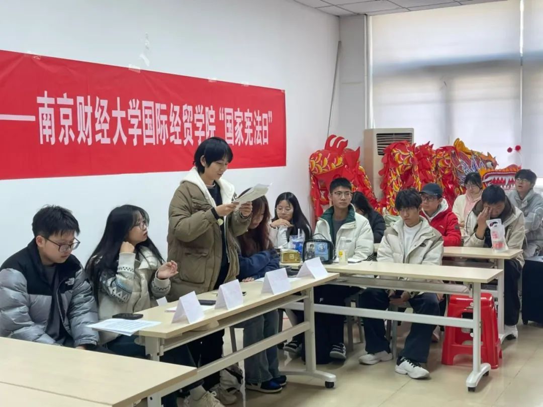 为深入贯彻国家宪法精神,增强大学生法治意识,2024年11月30日,南京财经大学国际经贸学院在德经楼401教室顺利开展了以"'法'护青春,'宪'在行动"为主题的国家宪法日活动。