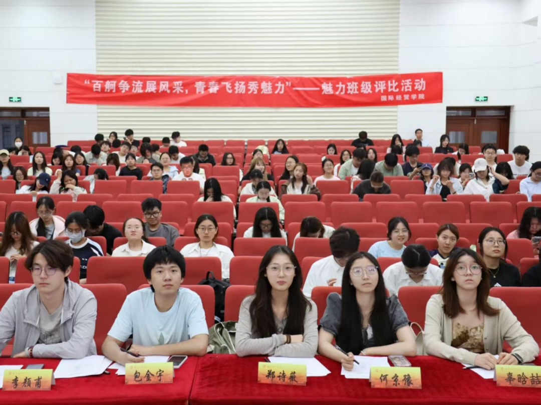 为充分展示各班级良好的学风建设和精神面貌,5月18日,国际经贸学院在仙林校区德经楼二楼报告厅举办“百舸争流展风采,青春飞扬秀魅力”魅力班级评比活动,学生会主席辜晗喆、包金宇、郑诗薇,分团委副书记何京豫、李颜甫担任评委,24级各班团支书通过述职汇报与才艺展示诠释班级特色。