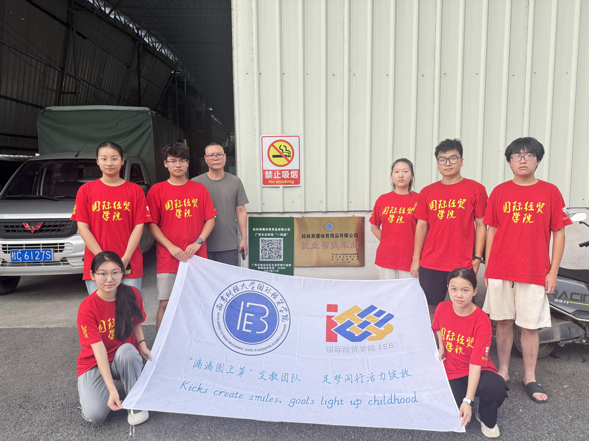 8月4日,南京财经大学“漓漓圆上草”暑期实践团队奔赴广西壮族自治区桂林市灵川县海洋乡,聚焦当地黑鹰体育用品有限公司的足球外贸业务展开实地调研。这支由国际经济与贸易、市场营销等专业学生组成的团队,在生产线的忙碌与办公室的交流中,解码体育用品从车间到海外的全链条,感受中小外贸企业在产业帮扶中的成长韧性。