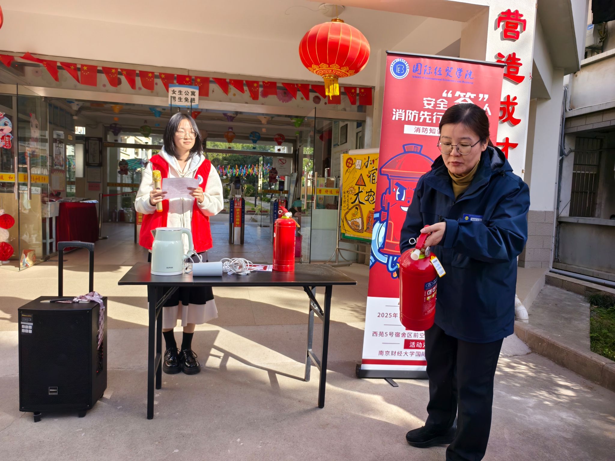 冬季是学生宿舍用电高峰期,火灾风险随之增大。为提升同学们的消防安全意识与应急自救能力,11月28日,国际经贸学院在西苑5号站前开展“安全‘答’人 消防先行”消防知识分享会。活动聚焦学生宿舍消防安全,通过真实案例警示、互动问答及灭火器实操演练,让学生在“学、问、练”中掌握消防技能。