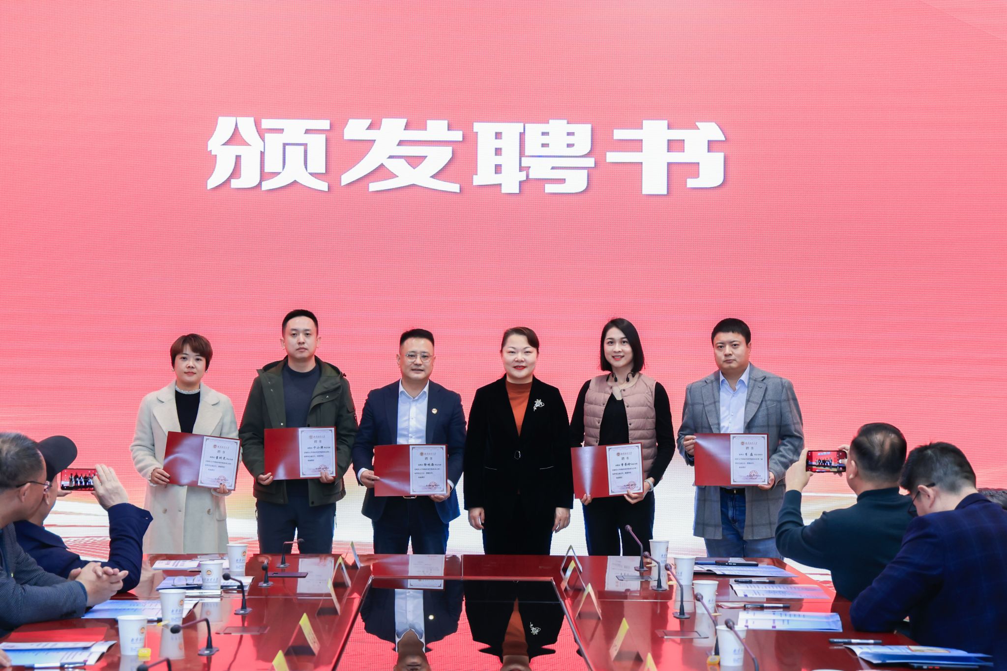 李煜副校长、陆明峰处长、周亚芳书记和徐林海会长分别为当选的第三届理事会会长、副会长,秘书长、副秘书长,顾问、名誉会长等颁发聘书,第二届理事会陈晓明会长与第三届理事会徐林海会长交接了国际经贸学院校友会会旗。