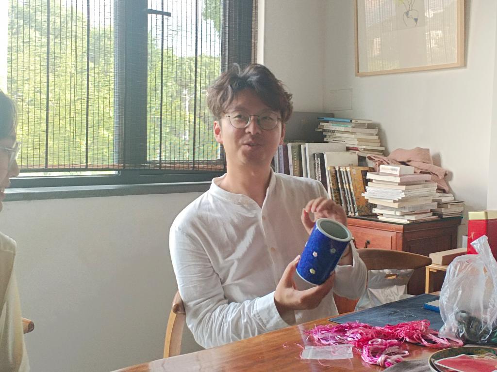随后,团队与张雪老师进行座谈交流。张雪老师深入探讨了传统刺绣工艺与现代科技技术融合的挑战与努力。张雪老师指出,在融合过程中,精确计算和前期实验至关重要,以与清华大学实验室合作的苏绣作品《玉兰花开》和瓷绣为例,指出刺绣作品的数字化与机器学习应用、手工与机械化生产的成本对比,以及市场趋势的变化,都提示着行业需要适应技术变革和市场需求。团队了解了目前苏绣的创新探索和AI、自动化等现代技术结合,更加坚定目前团队依赖智能设计、针迹自动识别等现代技术配合苏绣技艺赋能残疾人社会融入和价值实现的可行性。