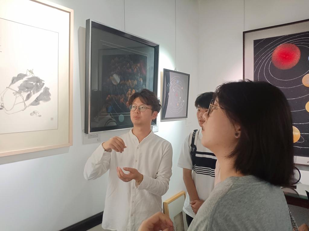 张雪老师带领团队参观了工作室,细细观摩了各种精美的苏绣作品,包括双面异色绣、异形绣、压花工艺、不同光线下的针法等。同学们有幸欣赏到代表张雪老师将苏绣与现代文化融合观念的作品——《星空》,并在张雪老师的讲解中感受到其对苏绣创新的坚持。