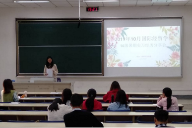 为了引导同学们更好地应对求职就业、做好充分的求职准备,2019年10月23日下午两点至三点,由南京财经大学国际经贸学院主办的2016级暑期实习经历分享会在德经楼117顺利举办。此次分享会邀请了在银行、外贸公司、四大会计师事务所之一和校友创业企业进行实习的五位同学代表发言,向同学们分享了他们各自不同的暑期实习经历。