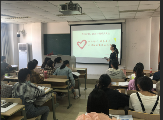 为弘扬奉献、友爱、互助、进步的志愿精神,鼓励更多的南财应届毕业生积极投身到苏北计划、西部计划中,国际经贸学院在4月25日于专一115开展了以“奋斗的青春最美丽”为主题的苏北计划、西部计划动员大会,由2015级学生党支部书记董敏老师主持大会,全体2015级毕业生参加此次大会。