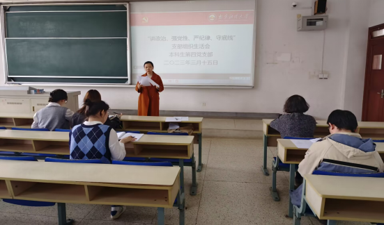 2023年3月15日下午13:00,国际经贸学院本科生第四党支部在德经楼115召开2022年度基层党组织生活会与民主评议党员会议,支部全体党员参加会议,其中大四年级校外实习党员通过腾讯会议同步线上参与,会议由党支部书记董敏主持。