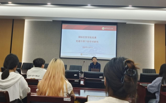 2023年11月1日,南京财经大学国际经贸学院在德经楼308开展了以“党建引领下的学术研究”为主题的专题党课,本次讲座由国际经贸学院院长、政治辅导员余泳泽教授主讲。