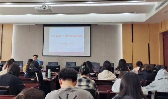 2024年4月20日,国际经贸学院党委副书记周进进以“加强党纪学习,筑牢党的纪律防线”为主题,在德经楼308会议室上专题党课。