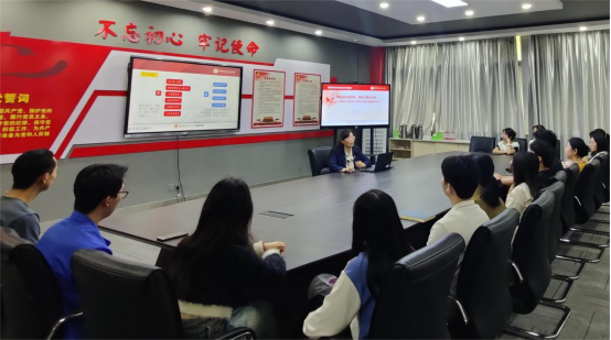 (国际经贸学院党委书记、研究生第一党支部政治辅导员周亚芳讲授纪律党课)