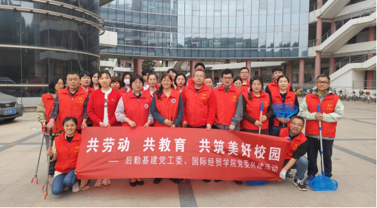 在“五一国际劳动节”到来之际,4月22日下午,后勤基建党工委与国际经贸学院党委联合开展天鹅湖清理党建共建活动,通过“沉浸式”参与、“交互式”分享,发挥协同育人功能,提升校园环境品质,实现同进共建互促。