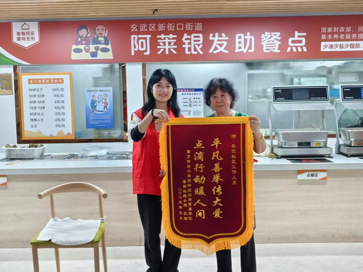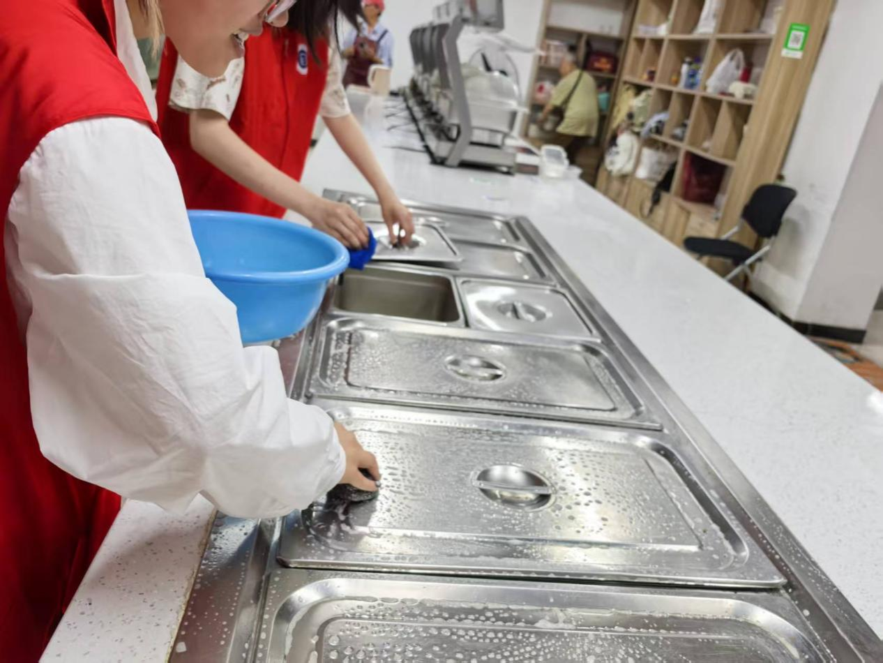 为响应推进劳动教育的号召,深入基层社区老人生活,传递社会正能量,2025年7月12日,南京财经大学国际经贸学院“一饭一心志愿队”走进南京悦心居家养老服务中心,走到社区老人的身边,意在把爱心传递到社区,将温情填满小小的食堂。