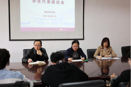 为全面落实好、开展好党史学习教育,深入了解学生在校学习、生活等方面的情况,根据南京财经大学本科教学计划安排,我院于4月21日召开了电子商务专业2019、2020级本科生学生代表座谈会,和学生代表谈心谈话,“问民盼、亮清单”。学院党委书记张阳军、副院长杨智华出席座谈会,会议由电子商务专业辅导员董敏主持。