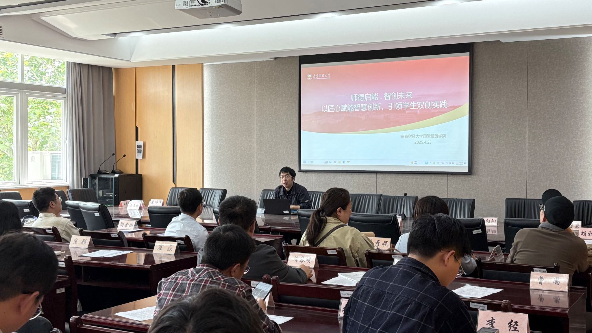 2025年4月23日下午,我院在德经楼308成功举办了一场以“师德启能·智创未来——以匠心赋能智慧创新,引领学生双创实践”为主题的名师名课示范观摩活动。李冠艺副院长担任主讲人,活动由院长余泳泽主持,学院教师到场参与学习交流。