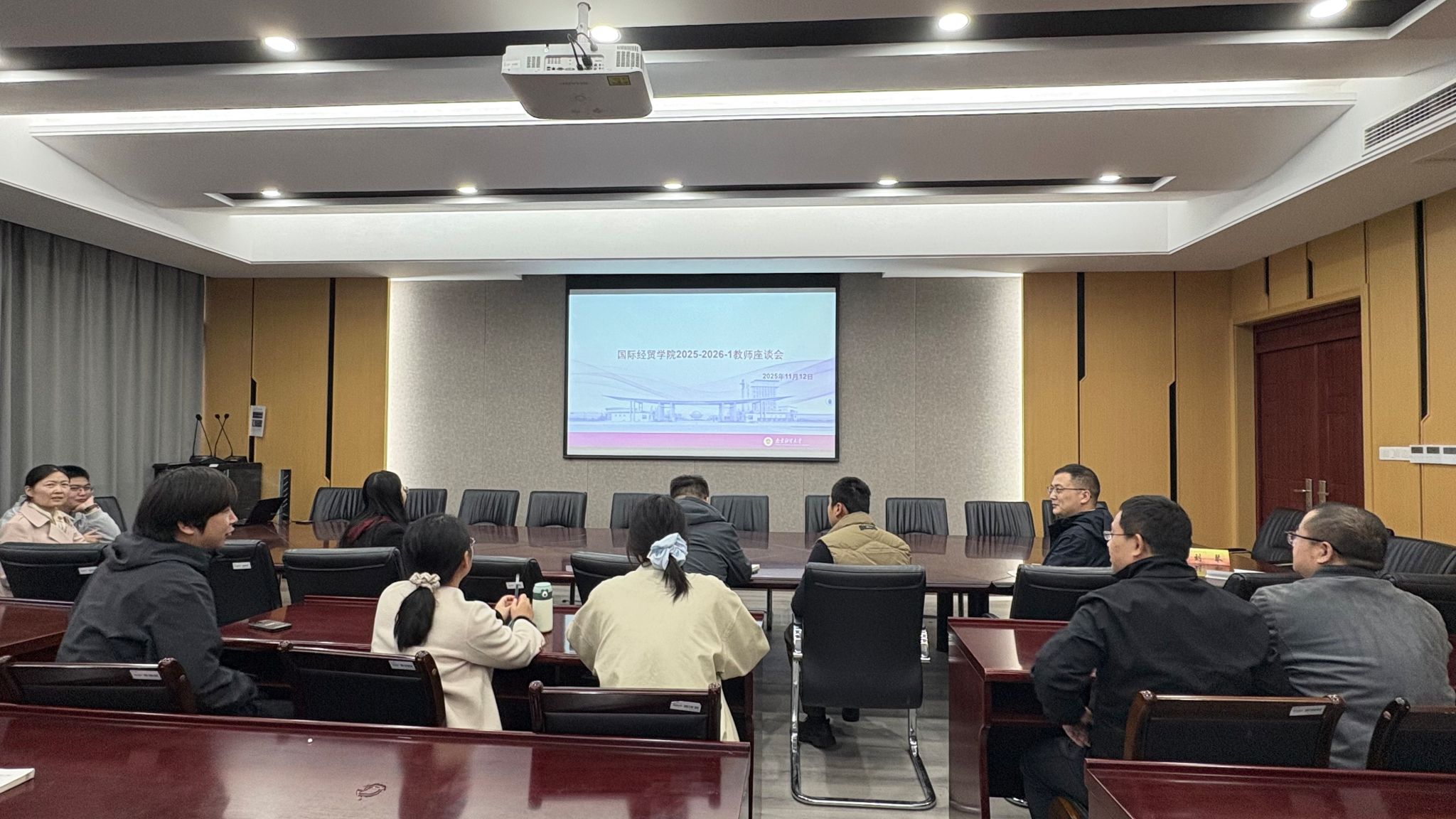 根据南京财经大学教务处《关于开展2025-2026学年第一学期期中教学检查工作的通知》相关要求,为全面了解教学运行情况,听取一线教师对教学建设与改革的意见建议,国际经贸学院于11月12日在德经楼308会议室召开期中教师座谈会。来自国际经济与贸易系、贸易经济系、电子商务系的系主任和教师代表参加会议。