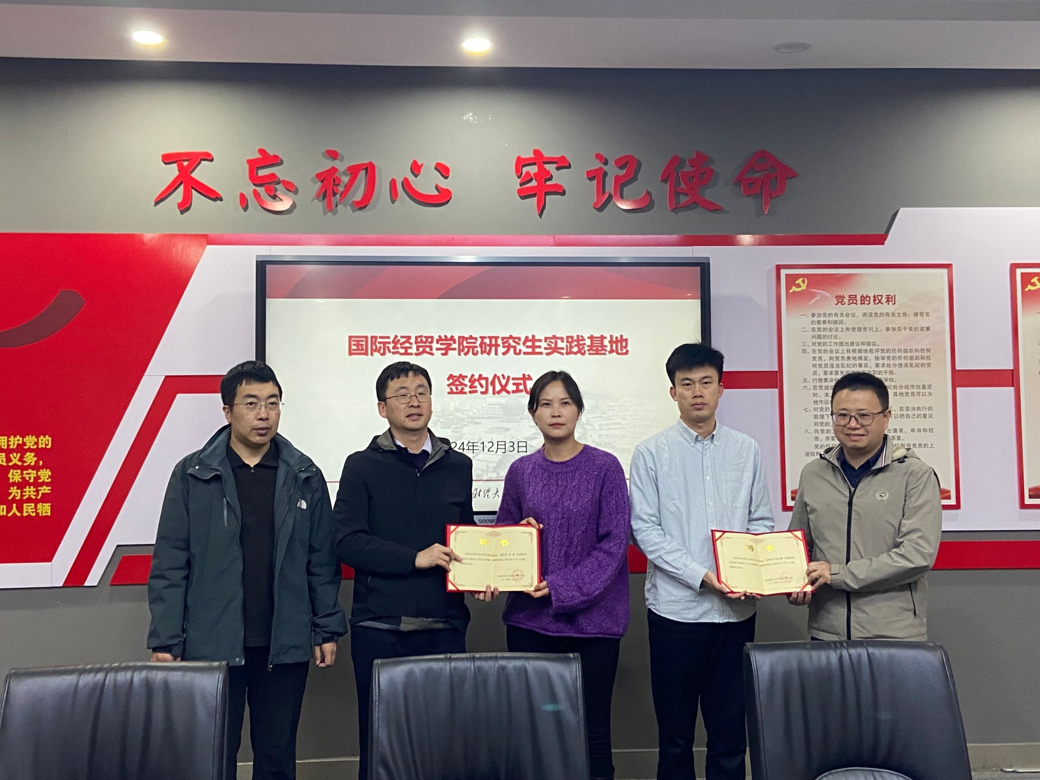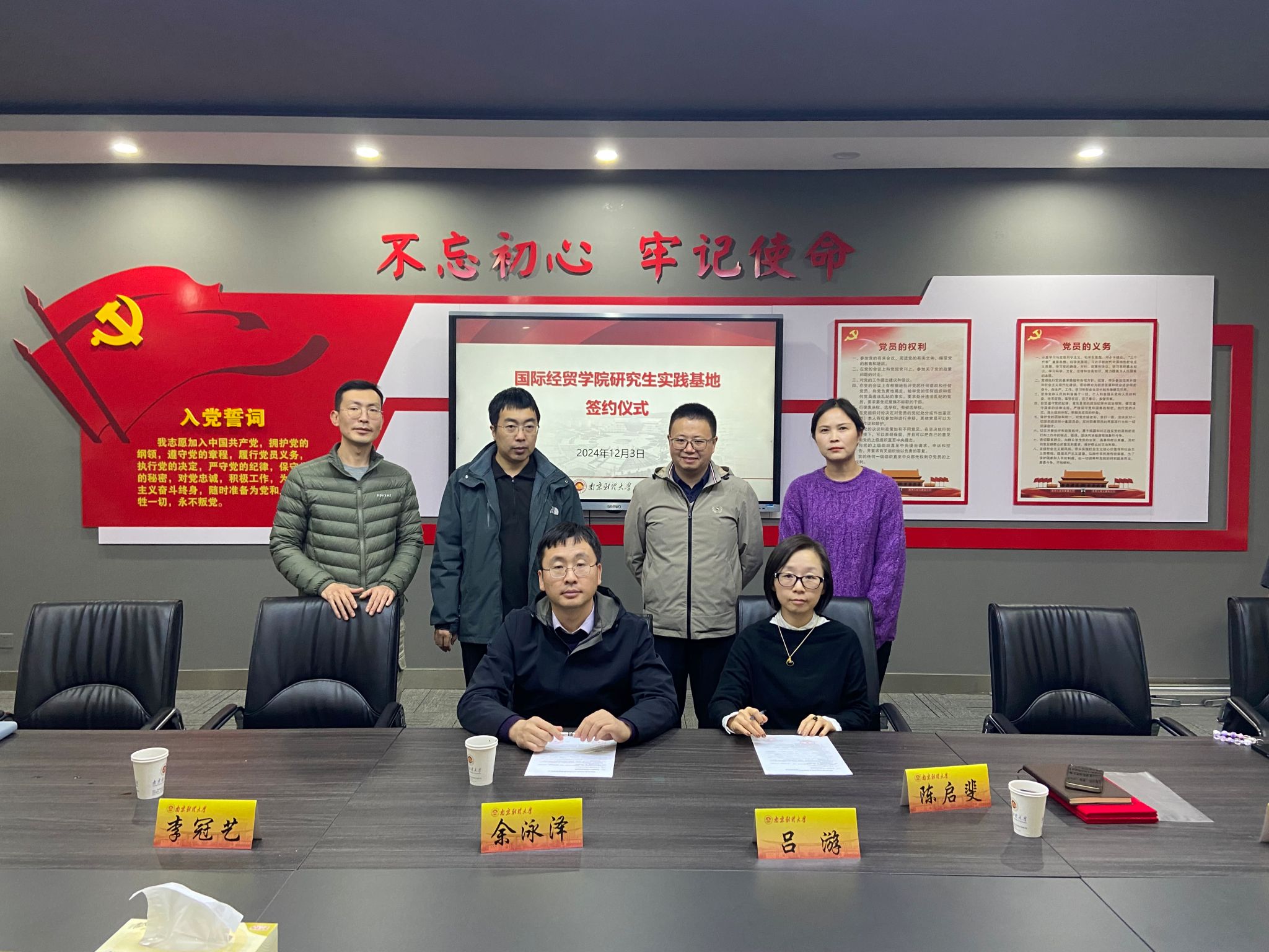 2024年12月3日下午,国际经贸学院与江苏未迟数字技术有限公司在德经楼206会议室举行了研究生实践基地签约仪式。余泳泽院长、陈启斐副院长、李冠艺副院长、学科骨干教师李平华、刘凯丰和张少辉出席了此次签约仪式。余泳泽院长对江苏未迟数字技术有限公司的四位领导莅临我院进行指导表示热烈欢迎和衷心感谢。陈启斐副院长向专家介绍了我院研究生实践基地建设的基本现状。