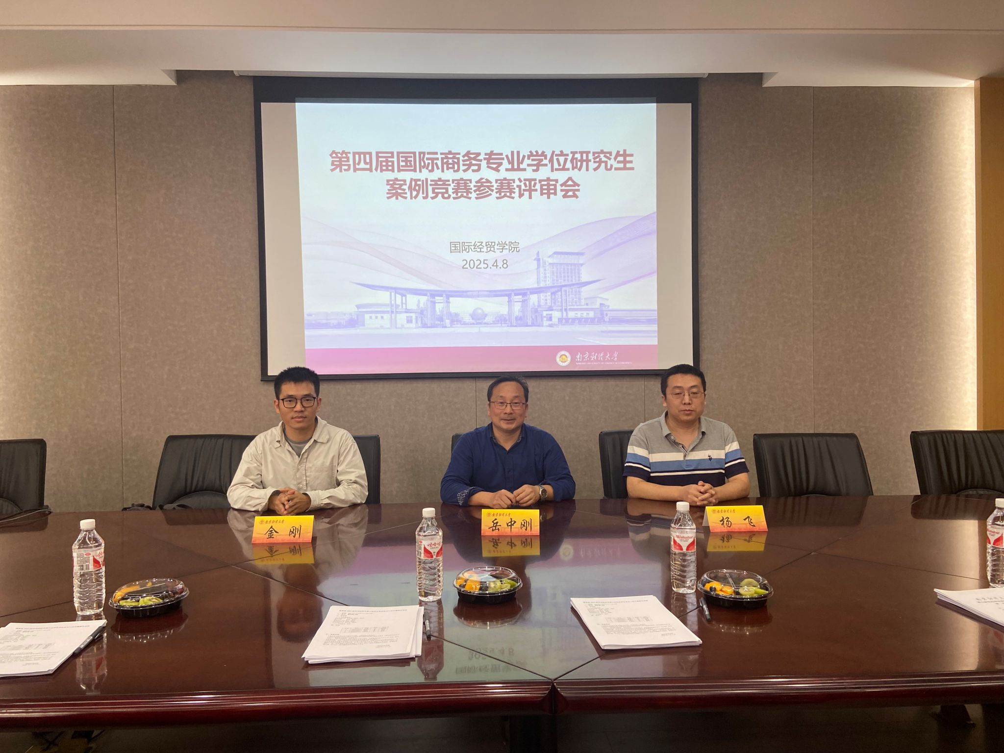 为更好地提高我校国际商务专业研究生的竞赛能力及案例分析实践能力,2025年4月8日上午9点,国际经贸学院在德经楼308会议室举办了第四届国际商务专业学位研究生案例竞赛参赛评审会,评审会由国际经贸学院副院长陈启斐主持,南京邮电大学岳中刚教授、南京审计大学杨飞教授、南京大学金刚副教授三位老师担任评审专家。
