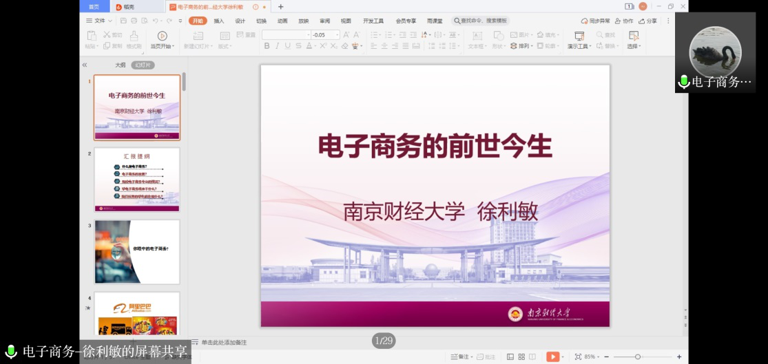 12月5号晚,我院徐利敏老师利用腾讯会议,在线上为高三学子带来了一堂名为《电子商务的前世今生》的招生宣讲课,来帮助同学们更好的了解我院的电子商务专业,把握高考新政策,谋划成长新视界。 徐利敏老师先从电子商务的定义出发,纠正大家对于电子商务的固有印象,她解释道:“电子商务是利用计算机技术、网络技术和远程通信技术,实现电子化、数字化和网络化的整个商务过程。” 从根本上说,电子商务带来的革命是观念的革命,...
