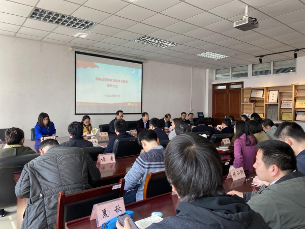 3月25日上午,我院在德经楼308会议室召开党史学习教育动员大会,全体教师参加会议,会议由我院党委书记张阳军主持召开。 张书记带领全体教师学习了习近平总书记在党史学习教育动员大会上的重要讲话精神,表明党史学习教育要全面做到学史明理,学史增信,学史崇德、学史力行、学党史、悟思想、办实事、开新局。张书记指出,学习党史,是不忘初心,牢记使命的必然要求;学习党史,是坚定党员信仰,投入新时代中国特色社会主义的必...