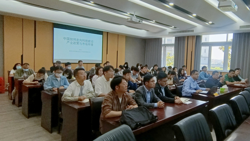 陈钊教授以《中国如何走向科技前沿?》为讲座主题,主要从产业政策、市场环境以及民营企业三个维度进行分析。本次学术讲座由国际经贸学院余泳泽院长主持,国际经贸学院、江苏产业发展研究院师生参加。