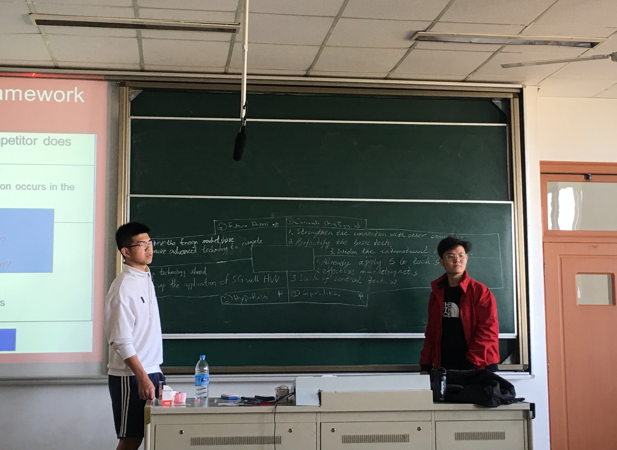 在前三天的课程中,Tanguy Jacopin教授系统的为学生介绍了波特五力模型(Porter’s five forces)、态势分析法(SWOT Analysis)、大环境分析(PESTEL Analysis)等分析工具。并从内部分析和外部分析两个方面出发,对国内外多个企业进行了比较和分析,其中包括麦当劳进入印度市场转变销售策略、迪士尼的价值创造与捕获、中国海运成功的原因等案例。并就华为、阿里巴巴、腾讯、百度等中国巨头企业为例,进行具体分析,生动将其背后所涵盖的经济知识与商业模式展现在同学们面前。除此之外,Tanguy Jacopin还向学生扩展了有关蓝海战略(Blue Ocean Strategy)和红海战略(Red Ocean Strategy)的区别、中国股市“黑色星期一”、金砖五国企业扩张的局限性等知识。