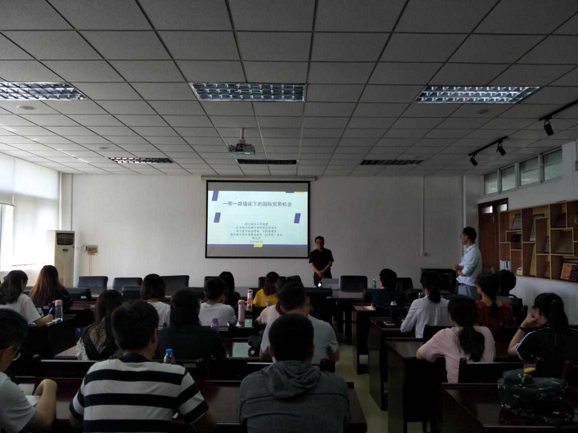 5月29日下午,江苏海洋资源开发研究院周立岩研究员在我院德经楼308会议室作了题为“‘一带一路’倡议下的国际贸易机会”的报告。报告会由许祥云副教授主持,国际经贸学院部分教师、研究生及国贸专业本科生聆听了此次报告。
