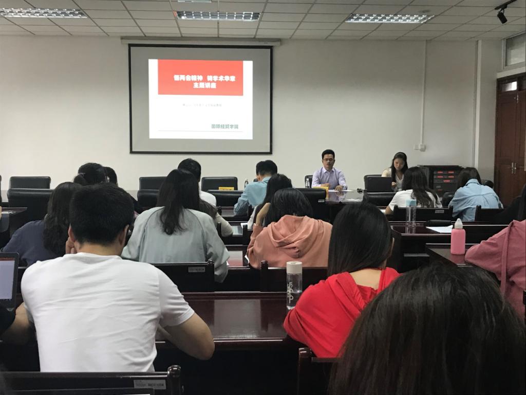 5月15日下午,应国际经贸学院邀请,南京财经大学马克思主义学院陈云云副教授在仙林校区德经楼308会议室作了题为“悟两会精神,铸学术华章”的专题讲座。会议由国际经贸学院副院长杨继军主持,部分老师及研究生参加了此次讲座。